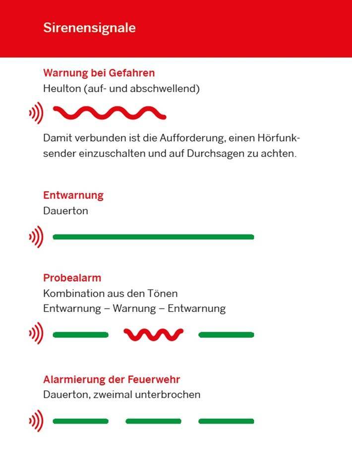 So soll noch einmal auf die Bedeutung der Warnsignale aufmerksam gemacht werden. Auf die rund 140 Sirenen wird dann zurückgegriffen, wenn es ernst wird. Mit dem Heulen wird die Bevölkerung bei großen Katastrophen oder Schadenslagen gewarnt - etwa bei Bombenentschärfungen, Großbränden oder Unwettern.